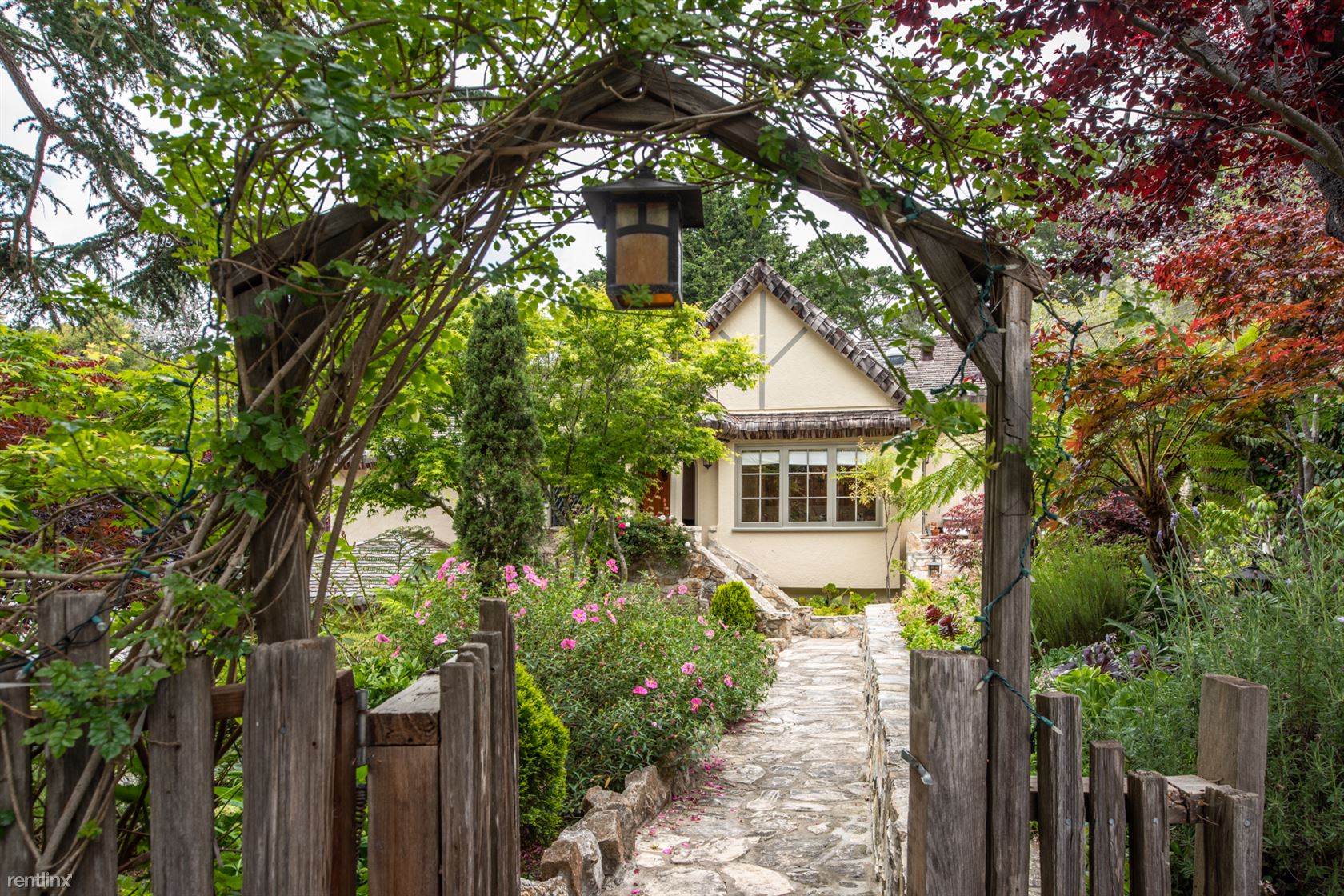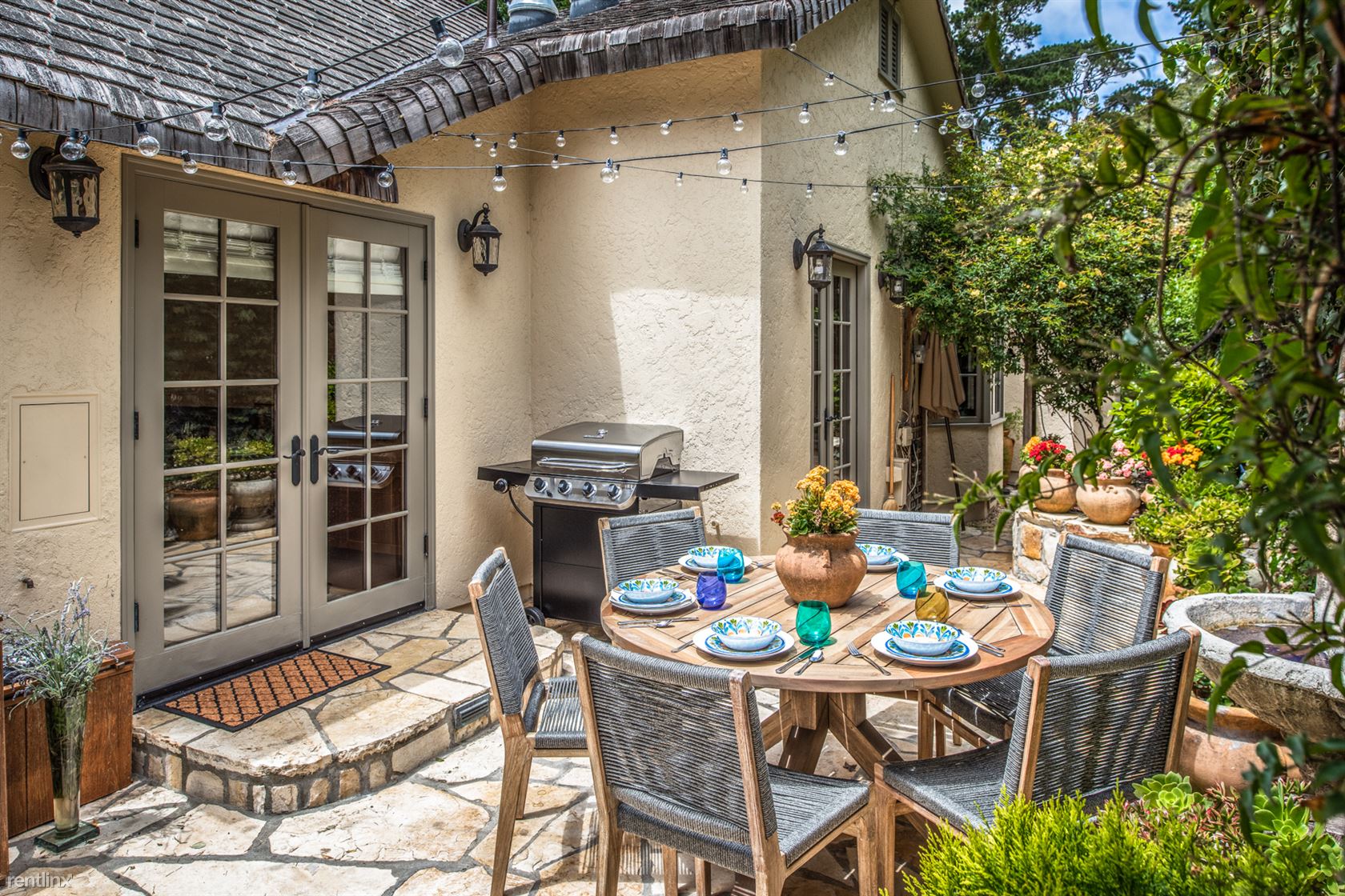 ***Please Do Not Disturb Tenants or Go Onto The Property Without the Listing Agent!*** ***The rental amount ranges from $7269 to $15,362 per month depending on length of stay and time of year*** A storybook English cottage, surrounded by serene gardens and tucked away in a quiet neighborhood of Carmel-by-the-Sea, offers exquisitely updated amenities as well as the perfect location that’s just a short walk from Ocean Avenue’s restaurants and shopping and the beach. The 3-bedroom, 3 full-bath home, built in 1925, has the timeless look of an English country cottage but has been fully renovated with upscale interiors by award-winning architect David Martin. The 2,009-square-foot pet-friendly residence includes a high-end chef’s kitchen, two Carmel stone gas fireplaces, artistic vaulted ceilings, oak hardwood floors, and beautiful detailing indoors and out. It’s just a 10-minute walk to shopping and dining in downtown Carmel, or 10 minutes to the beach. It’s also a 15-minute drive to local attractions like golf and sightseeing in Pebble Beach, vintage Victorian homes and shopping in Pacific Grove, or to historic Cannery Row and the Monterey Bay Aquarium. Guests entering under the vine-covered garden arch will think they’ve stepped into a fairy tale, with beautiful gardens blooming with hydrangea, jasmine and roses, framed by live oak trees, succulents and Japanese maples. Flagstone walkways lead to the doorway of the cottage, which sports a traditional English country gabled roof. Inside, original artwork, handcrafted plaster walls and vaulted ceilings add to the tasteful ambiance. The fully-equipped kitchen features alder cabinets, solid-surface countertops, a Sub-Zero refrigerator and wine fridge, Míele double oven and gas cooktop with five burners, and a deep sink with pull-out faucet. The adjacent dining area has seating for six. Extra storage space can be found in the laundry room, which has a washer and dryer. There is space to park two cars in the driveway. (RLNE4146093)